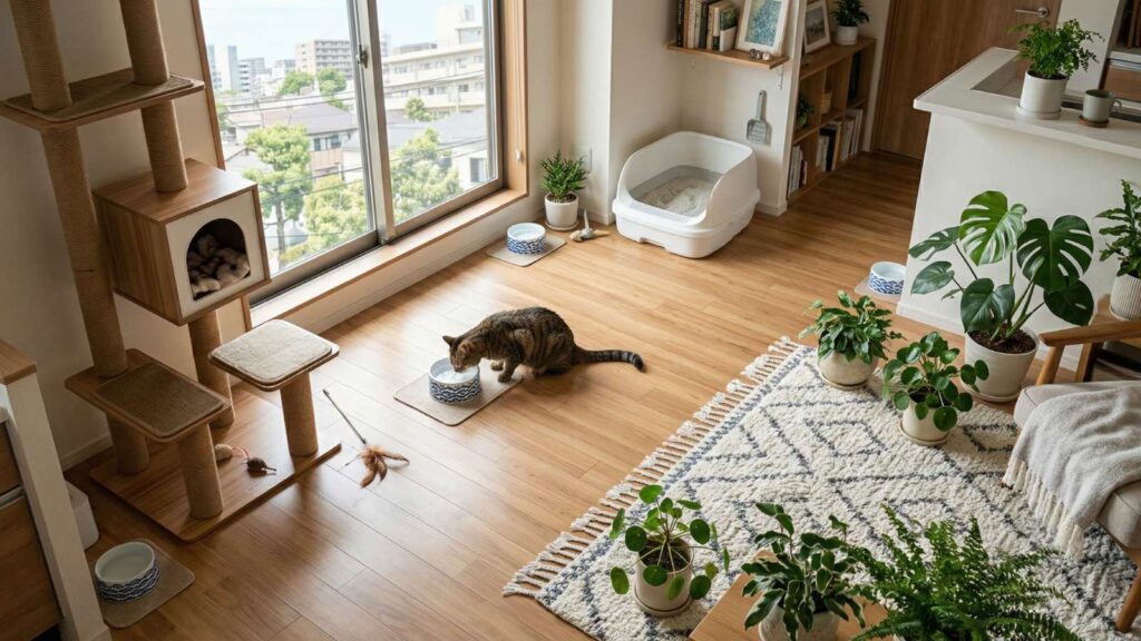 頭数+1個のトイレ、広さ40cm以上、無香料砂使用、毎日清掃
